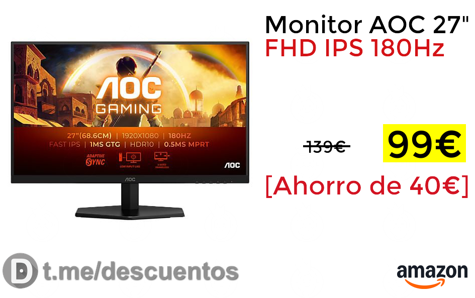 🔹Monitor AOC 27" FHD IPS 180Hz solo 99€❗️⚡️ (PVP: +139€)