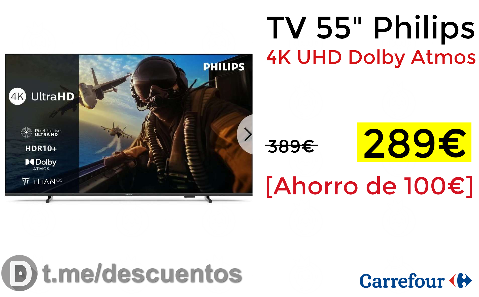 🔹TV 55" Philips 4K UHD Dolby Atmos solo 289€❗️⚡️ (PVP: +389€)