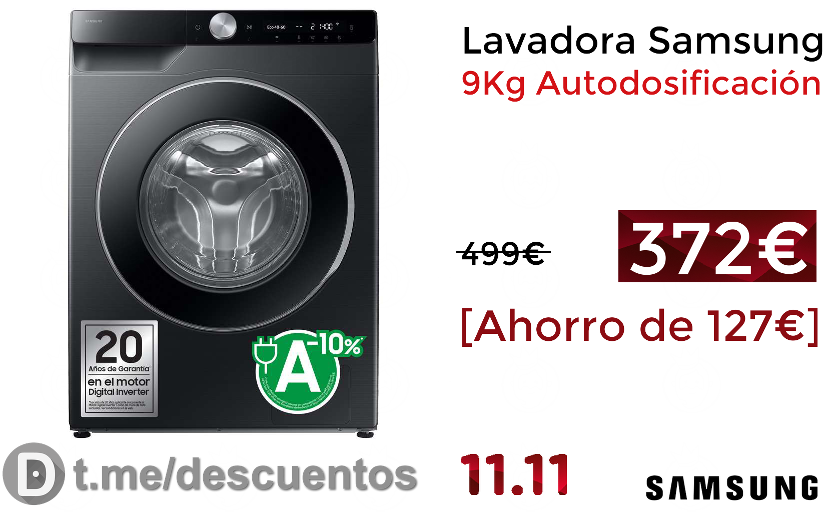 🔹Lavadora Samsung 9Kg Autodosificación solo 372€❗️❤️ (PVP: +499€)