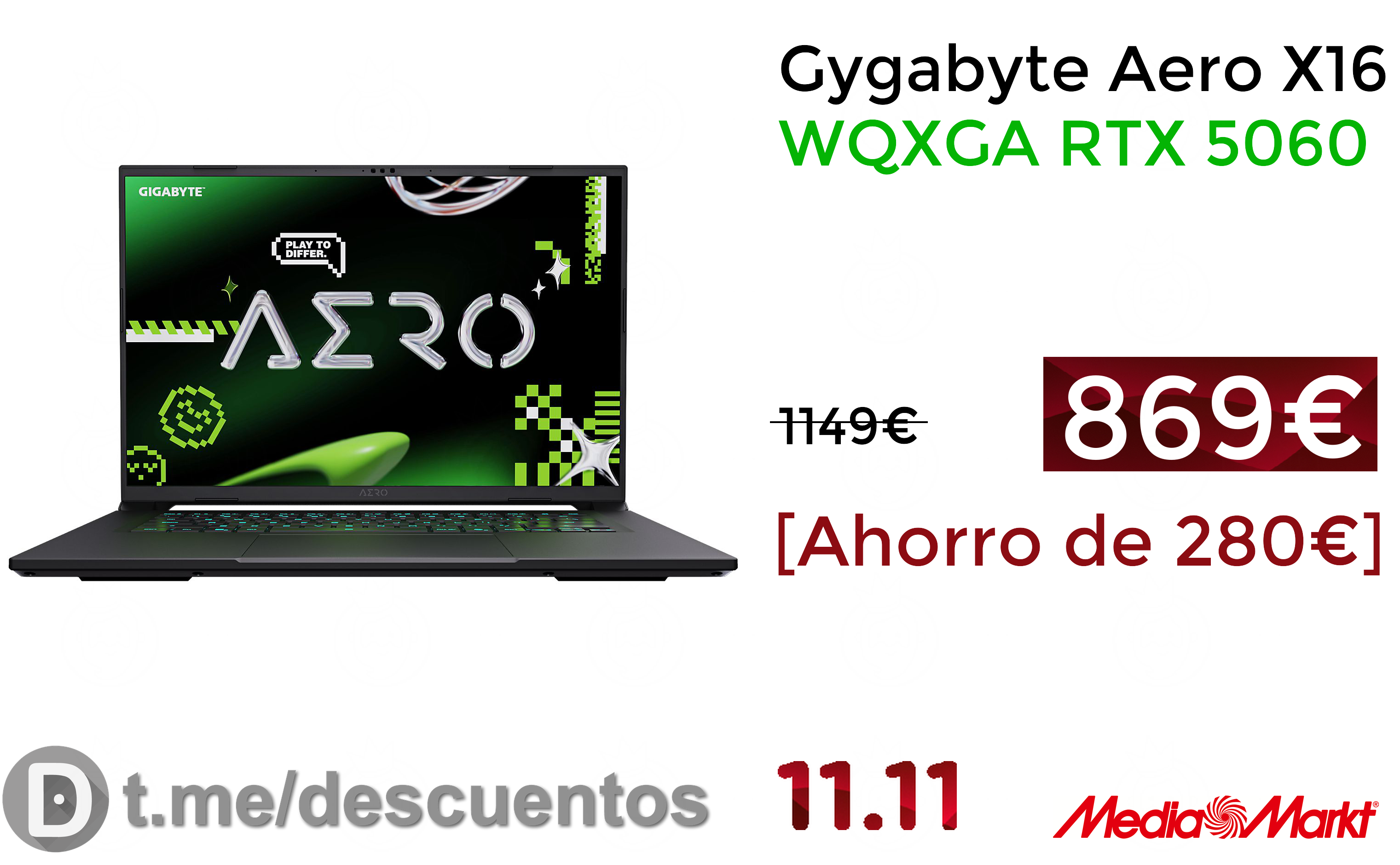 🔹Gygabyte Aero X16 WQXGA RTX 5060 solo 869€❗️❤️ (PVP: +1149€)