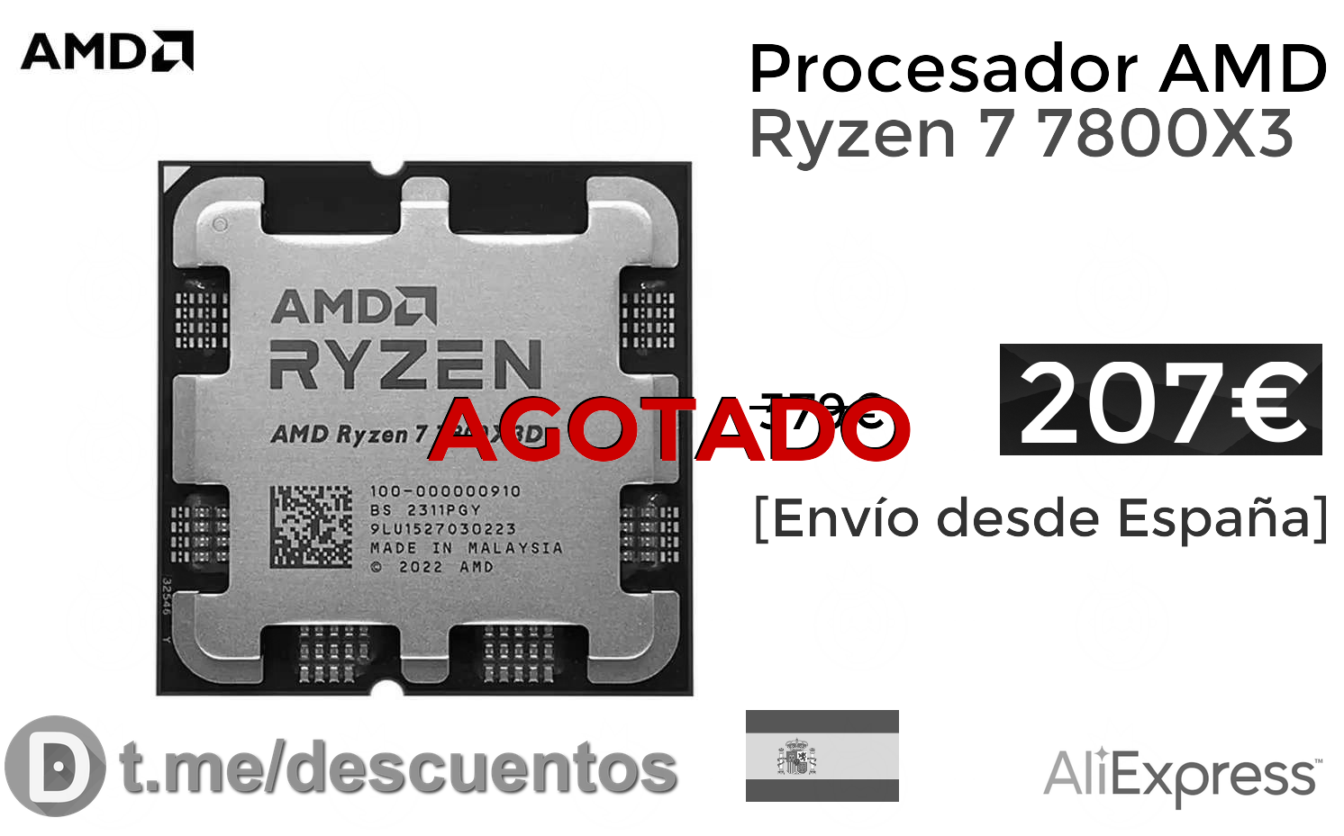 🔹Procesador AMD Ryzen 7 7800X3 solo 207€❗️❤️ (PVP: +379€)