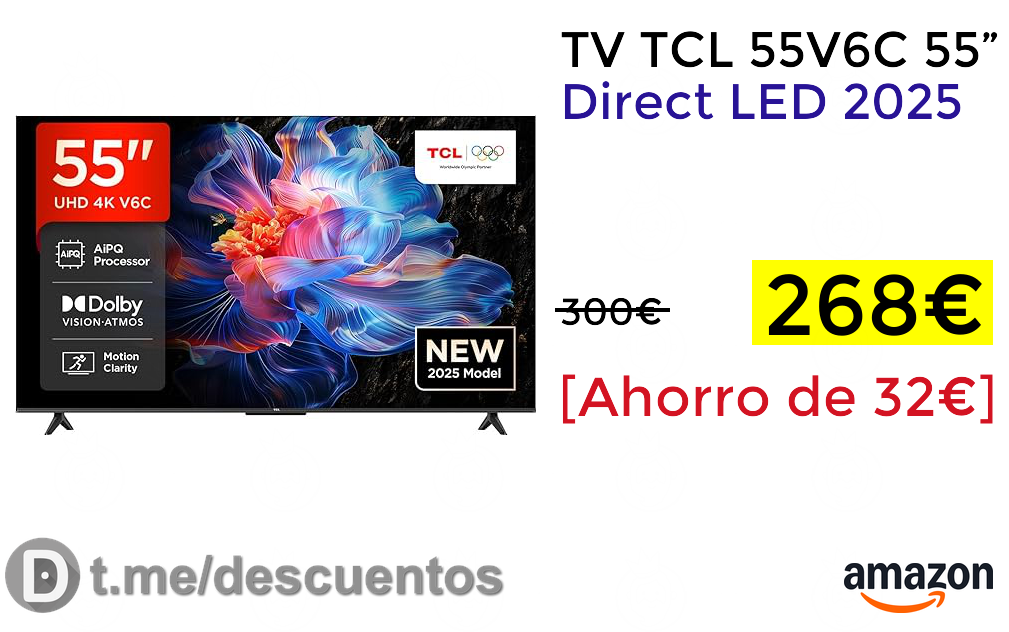 🔹TV TCL 55V6C 55” Direct LED 2025 solo 268€❗️⚡️ (PVP: +300€)