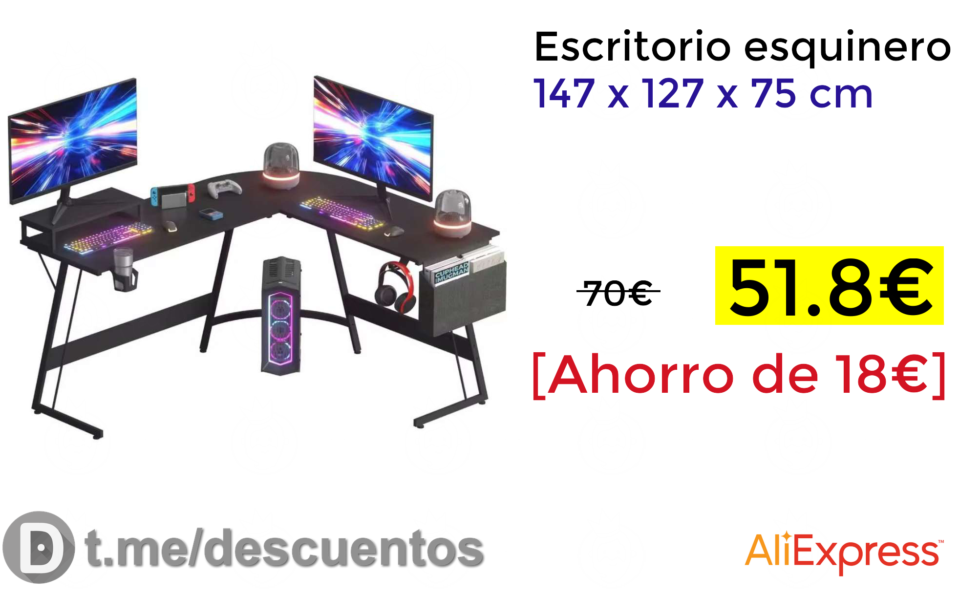 🔹Escritorio esquinero 147 x 127 x 75 cm solo 51.8€❗️⚡️ (PVP: +70€)