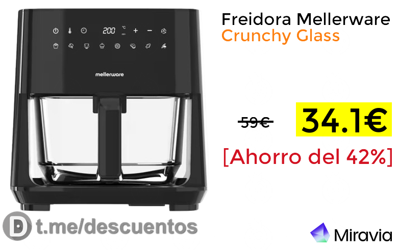 🔹Freidora Mellerware Crunchy Glass solo 34.1€❗️⚡️ (PVP: +59€)