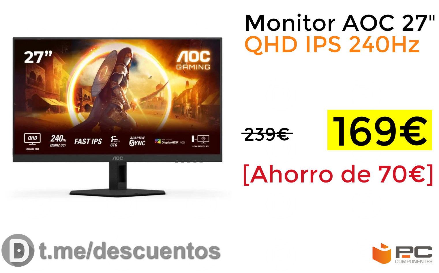 🔹Monitor AOC 27" QHD IPS 240Hz solo 169€❗️⚡️ (PVP: +239€)