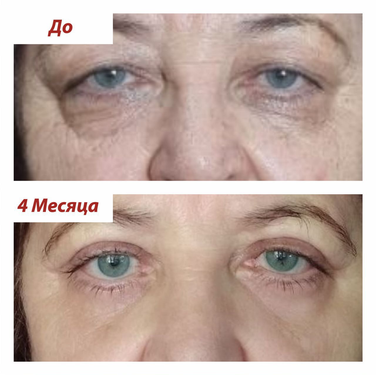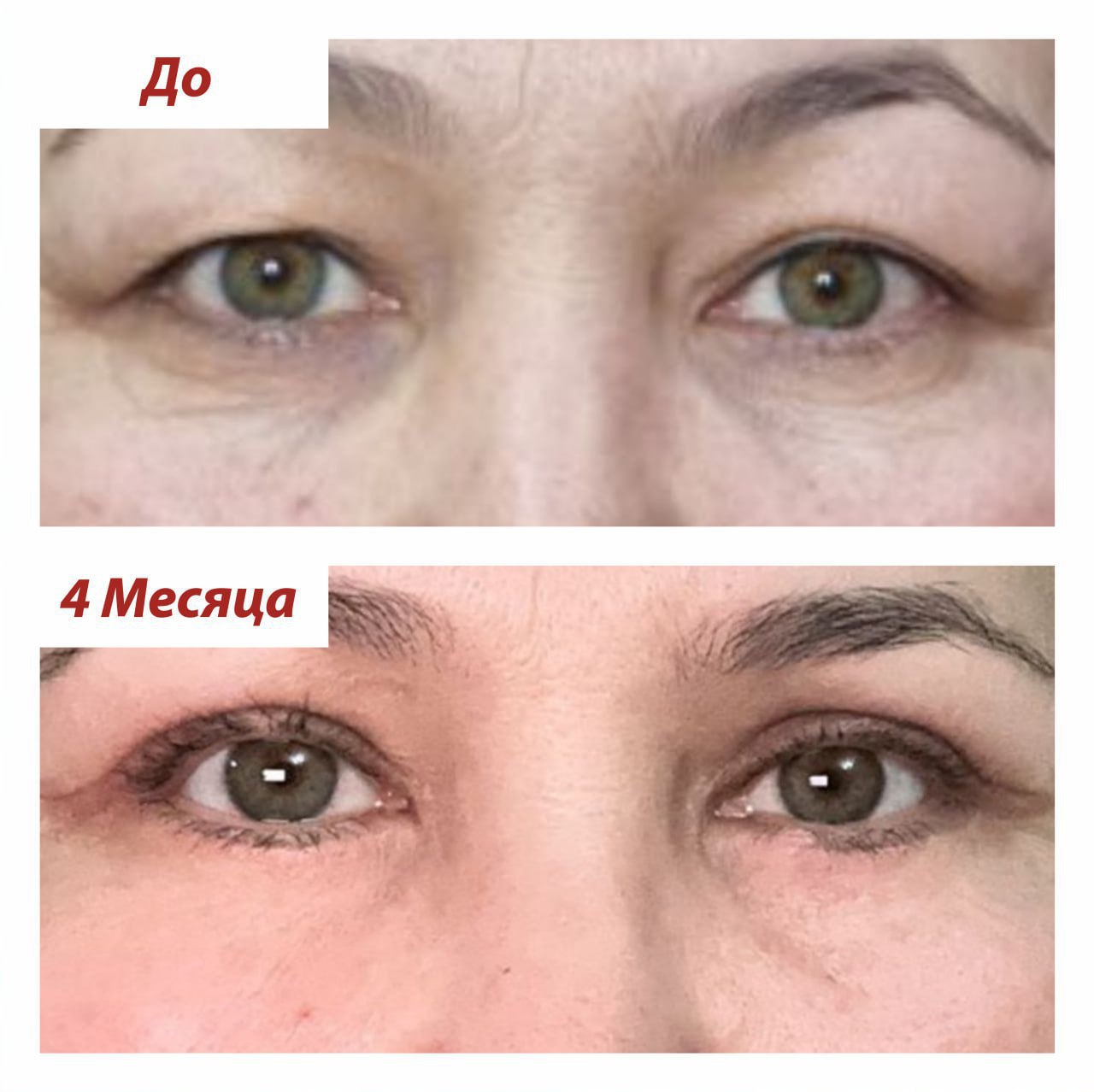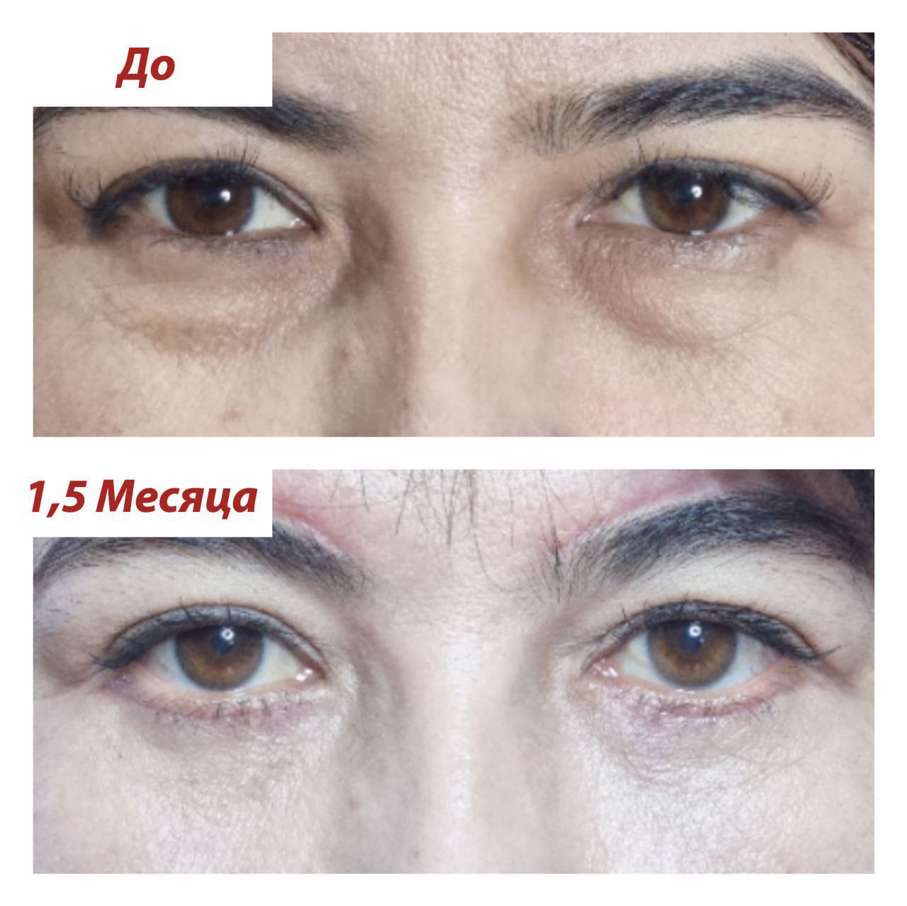 ✨ Наша пациентка блеснет ярким взглядом уже через 1,5 месяца после операции блефаропластики нижних век с броулифтингом! 🌟