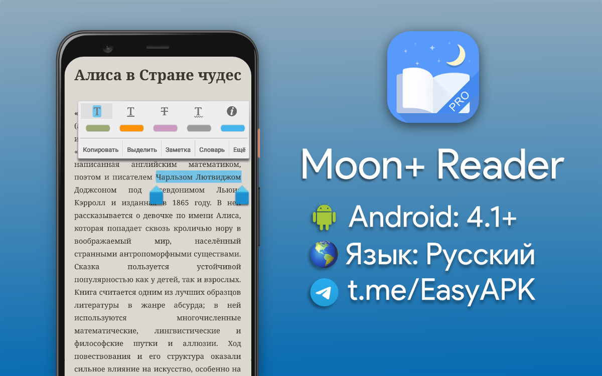 Moon+ Reader Pro — читалка с хорошим дизайном. Поддерживает почти все форматы книг. #apps @EasyAPK