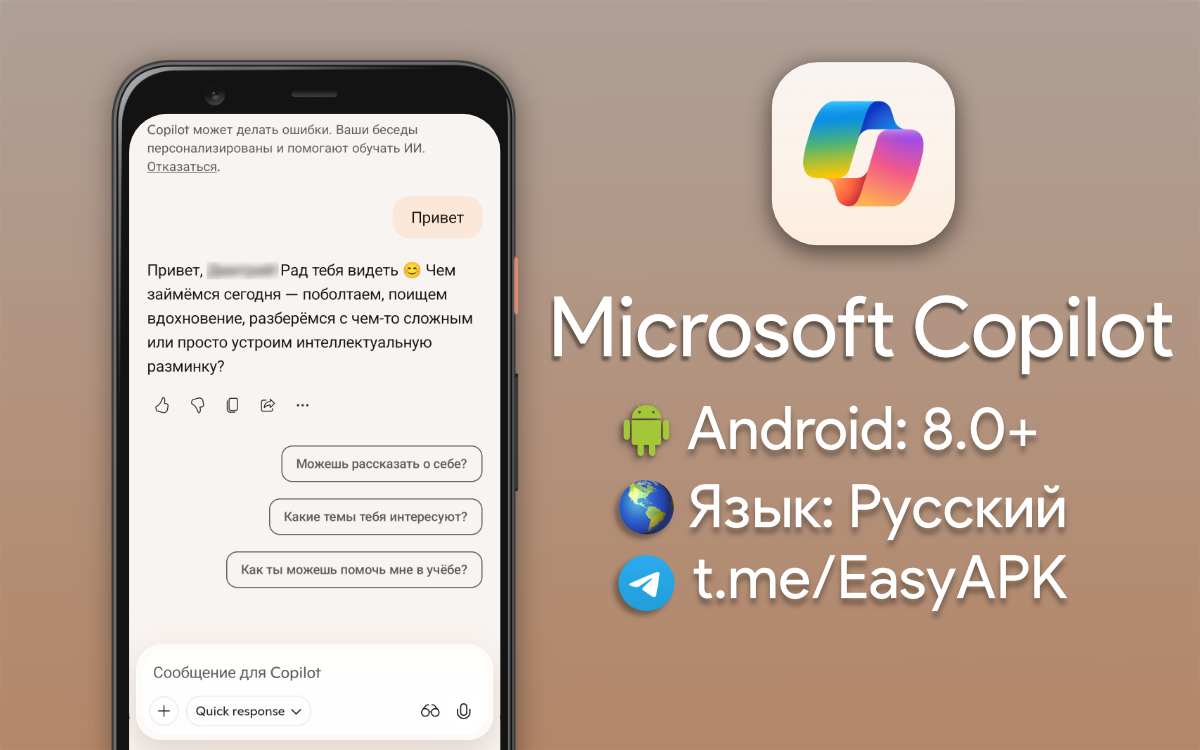 Microsoft Copilot — это популярный нейросетевой ИИ-помощник от компании Microsoft. #apps @EasyAPK