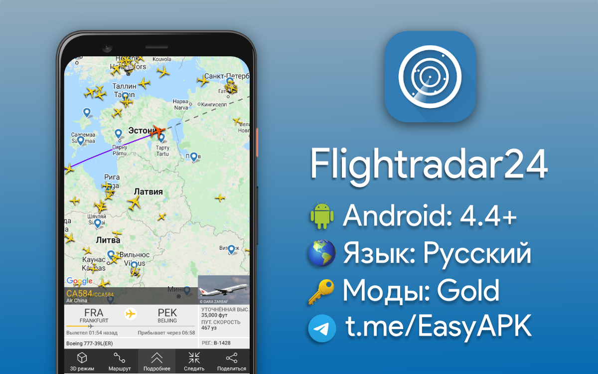 Flightradar24 — в реальном времени показывает перемещения самолетов на карте по всему миру. #apps @EasyAPK