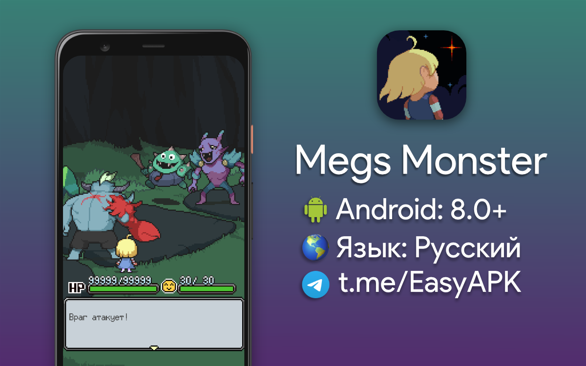 Megs Monster — это короткая нарративная JRPG с большим сюжетным поворотом. Игрок управляет монстром по имени Рой, который начинает игру с 99,999 ОЗ и кажется неприкасаемым, но настоящая проблема заключается в том, чтобы уберечь Мег от опасностей, потому что если она начнет плакать, то игра будет окончена для всех. #games @EasyAPK