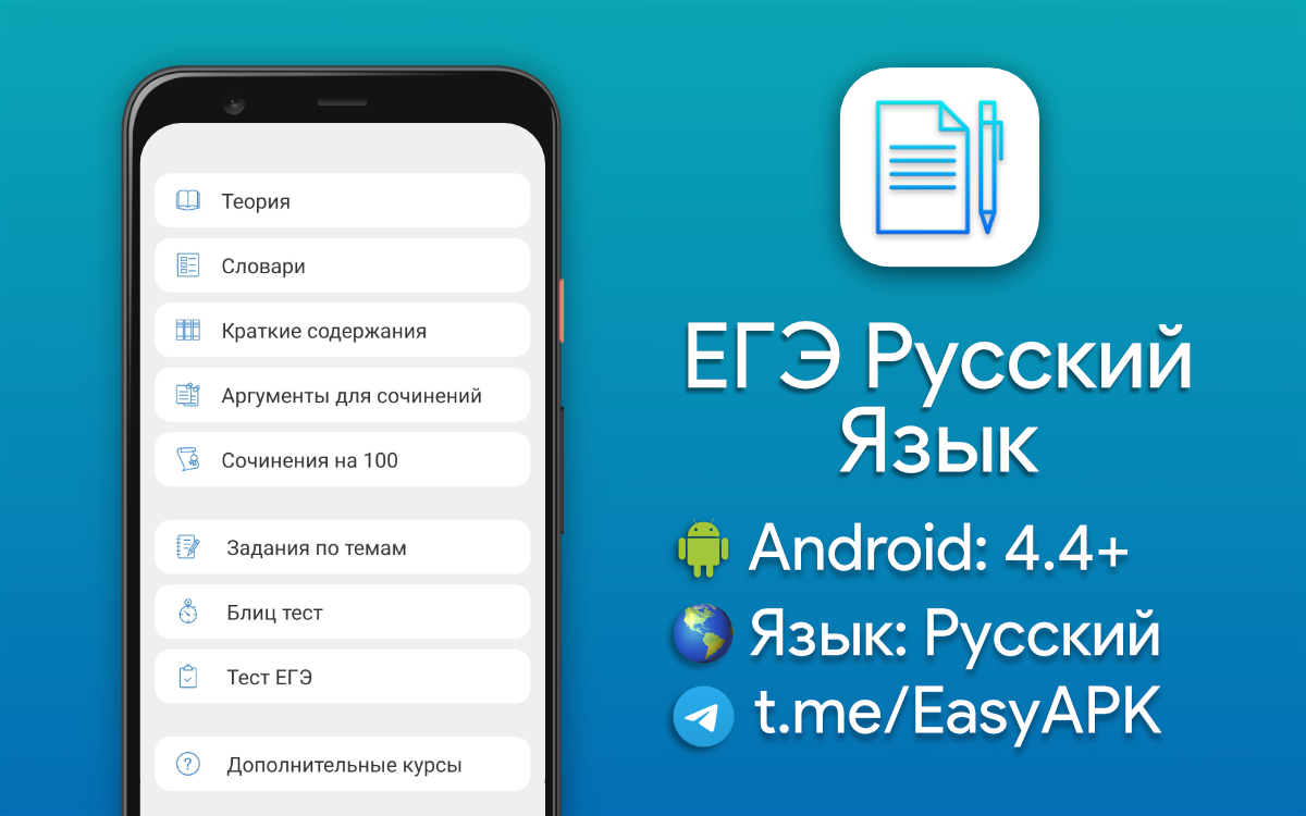 ЕГЭ Русский Язык — приложение содержит в себе огромное количество материалов для подготовки к ЕГЭ по Русскому Языку в 2026 году. #apps @EasyAPK