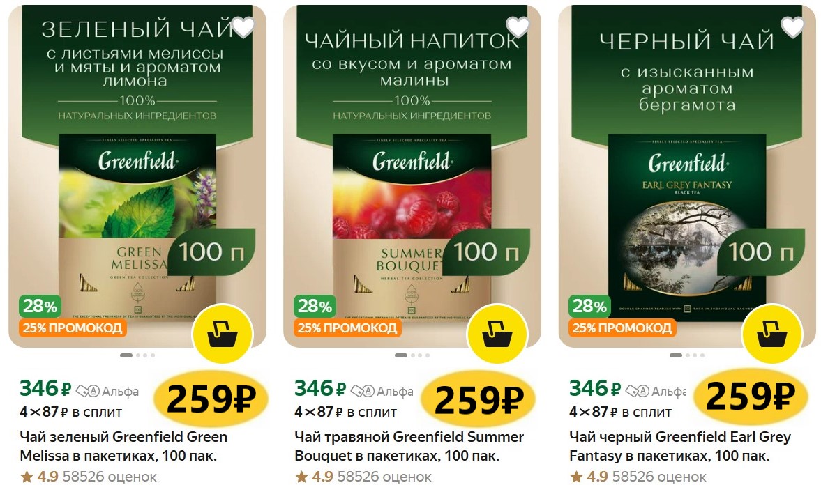 • Чай Greenfield, 100 пак. с кодом: CHAY