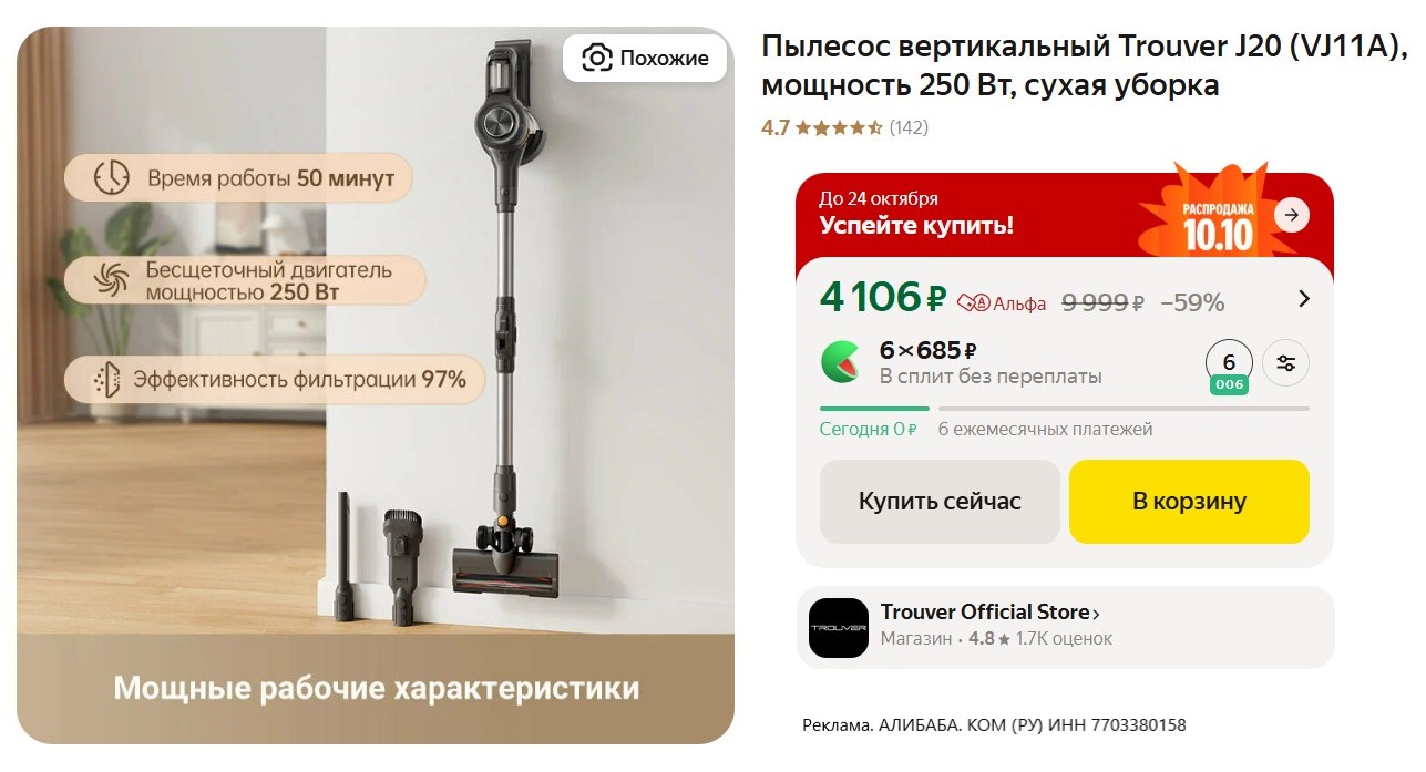 • Пылесос вертикальный Trouver J20 за 4106₽. В других 5712₽. Бесщёточный мотор обеспечивает до 50 минут уборки, складная трубка и подсветка на основной щётке позволяют легко убирать под мебелью и в труднодоступных местах.