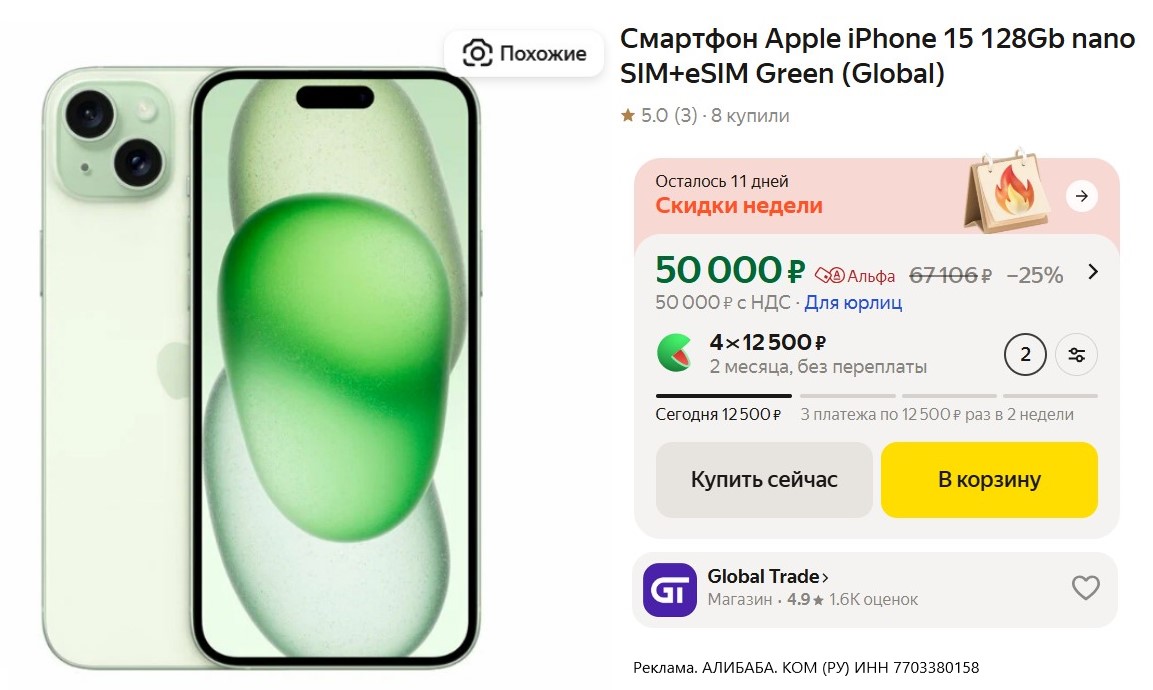Такие цены при оплате Яндекс Пэй или Альфа-Картой, но могут отличаться, проверяй у себя.
