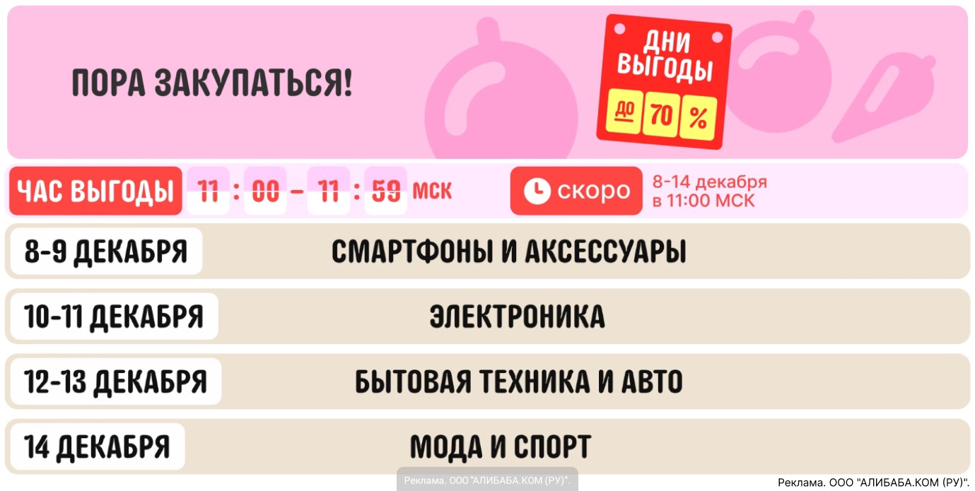 Дни выгоды: 08.12 (11:00 Мск) - 15.12 (10:59 Мск)