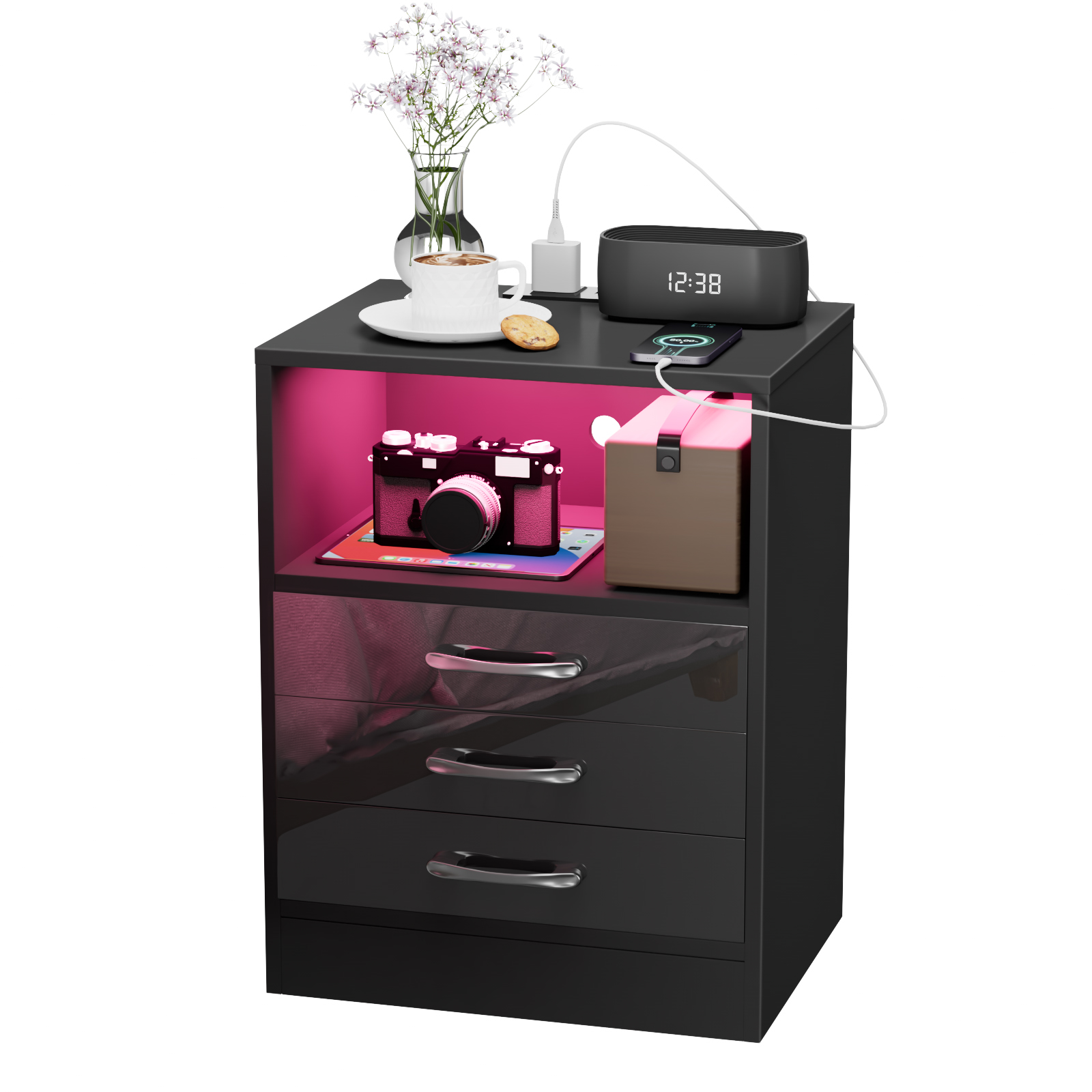 🌀Rcynview Mesa de Noche con Estación de Carga y LED Auxiliar Ajustable en 16 Colores Unidad de Almacenamiento para Sala de Estar ❗️ #Miravia 🇪🇸