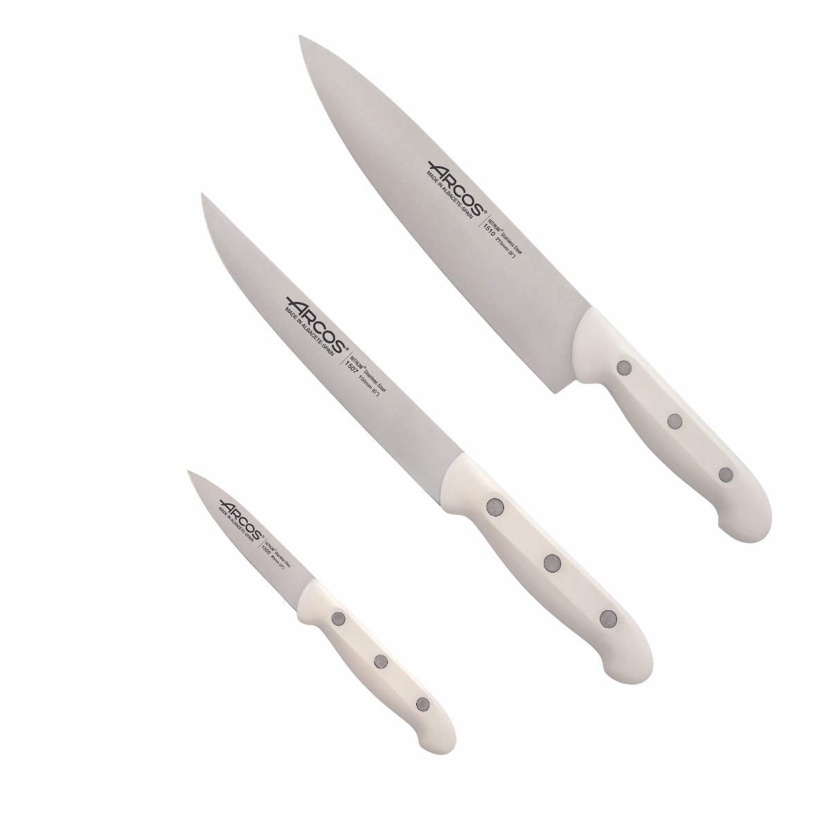 🌀Arcos Serie Artika - Set de Cuchillos de Cocina 3 piezas (Mondador + Cocina + Chef) - Hoja de Acero Inoxidable NITRUM - Mango de Polipropileno Color Blanco ❗️ #Miravia 🇪🇸