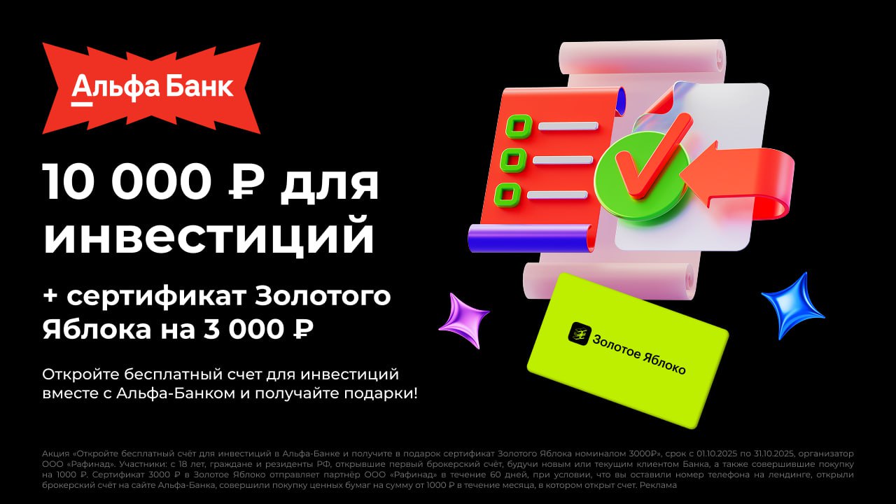 ▶️ Получить до 10 000 руб. + сертификат на 3000 руб. за первый брокерский счет в "Альфа-Банке"