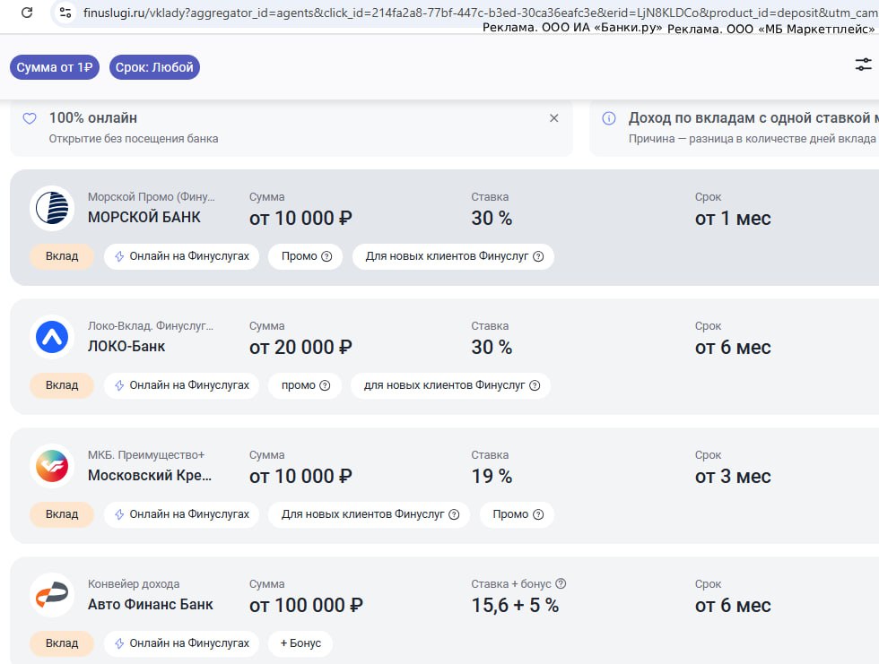 P.S. Для подтверждения личности и получения возможности открывать вклады онлайн через маркетплейс "Банки.ру" не обязательно встречаться с представителем платформы, всё можно сделать дистанционно через "Госуслуги" и T-ID или Альфа-ID, т.е. достаточно быть клиентом "Т-Банка" или "Альфа-Банка".