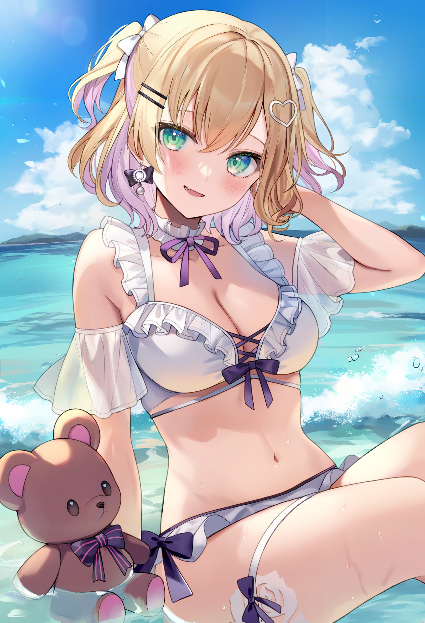 #aria_(ariacue) #bikini #garter #iris_black_games #kurumi_noah #see_through #swimsuits #tattoo #vspo! #wet