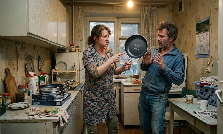 Иногда семейные конфликты заканчиваются громкими словами. Иногда — хлопаньем дверей. А иногда — металлической сковородкой.
