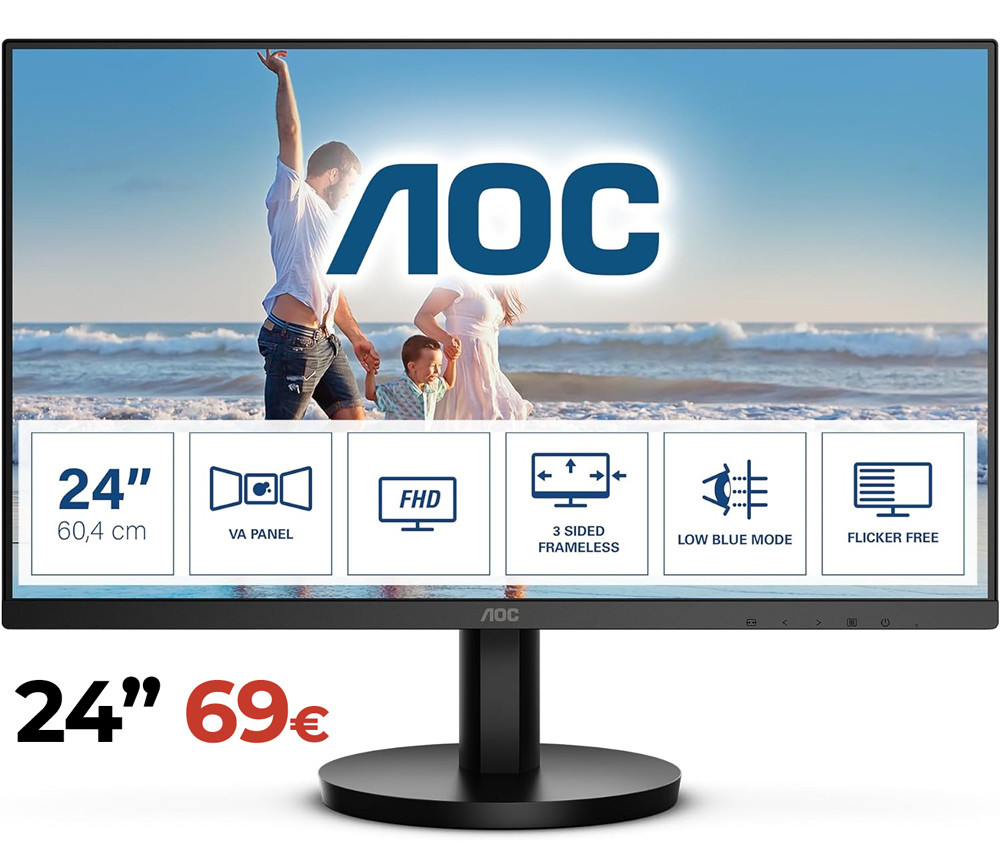 Monitor AOC 24" VA FULLHD 75Hz 122% SRGB ►69€