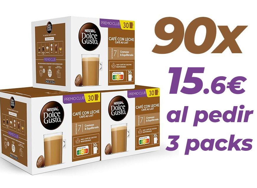 Pack 90 cápsulas de café con leche Nescafé Dolce Gusto ►15.6€ al pedir 3 packs