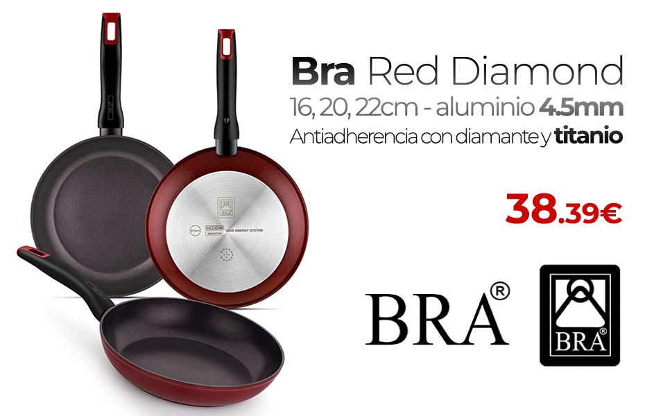 3 sartenes BRA Red Diamond 18/22/26cm - antiadherencia con diamante y titanio ►38.4€