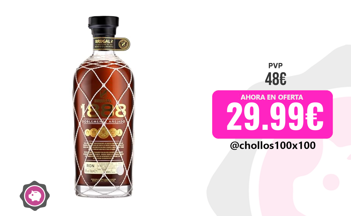 ✨Descubre Brugal 1888, un ron dominicano excepcional de color ámbar dorado. Su doble añejamiento en roble americano y europeo le otorga un sabor suntuoso con notas de vainilla, toffee y madera. Disfruta de su aroma complejo con toques de melocotón y chocolate. Perfecto solo o en cócteles creativos, una experiencia única.