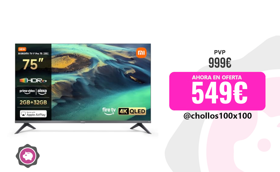 XIAOMI TV F Pro 75, 75 Pulgadas (190 cm), 4K UHD QLED, Smart TV, Fire TV, Control por Voz Alexa, HDR10+, 60Hz con 120Hz Game Boost Mode, MEMC, 2GB+32GB, Compatible con Apple AirPlay, 2025