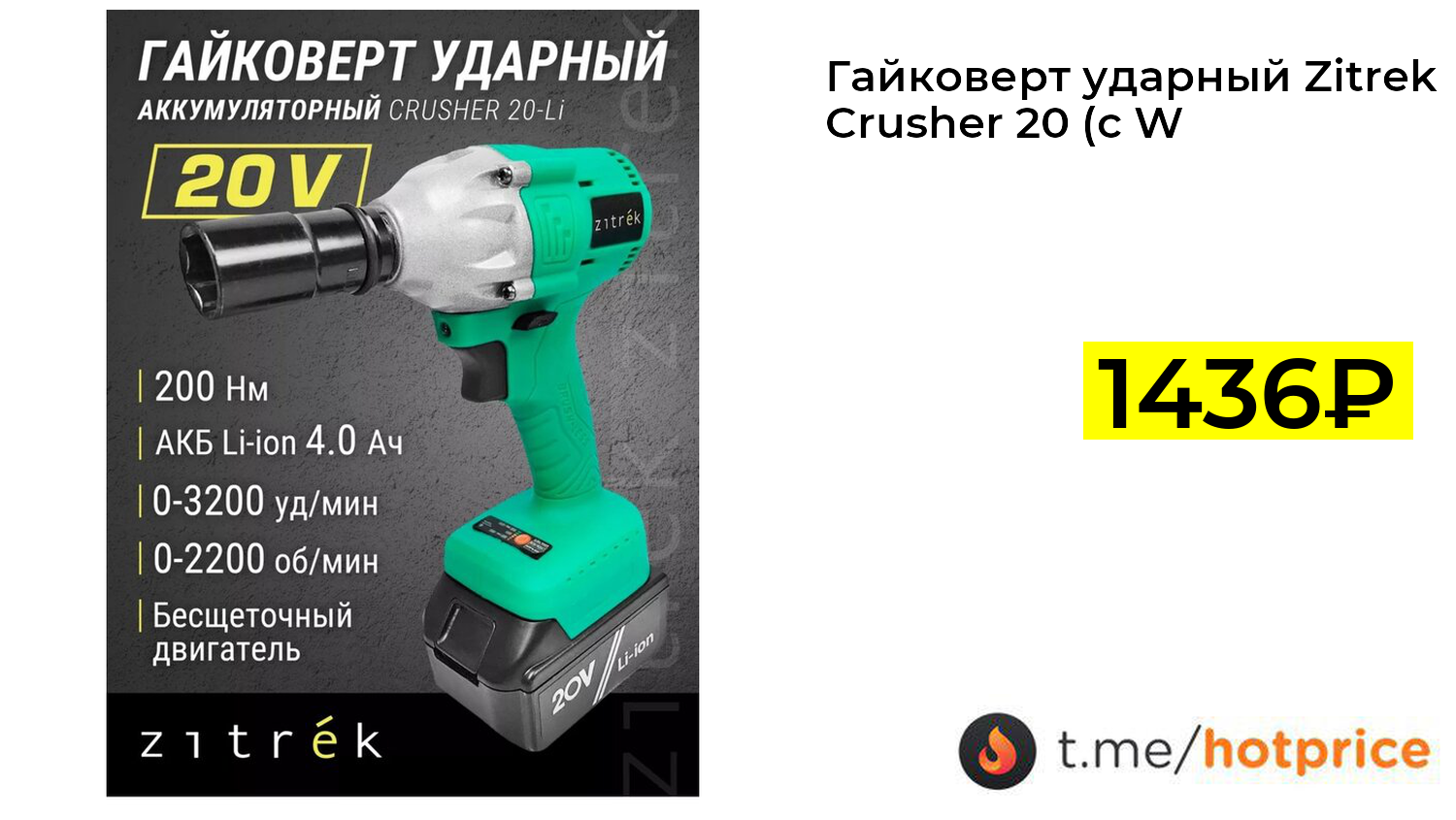 🔹 Гайковерт ударный Zitrek Crusher 20 (с WB кошельком) за 1436₽ ❗️