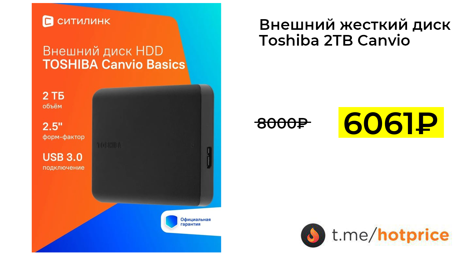 🔹 Внешний жесткий диск Toshiba 2TB Canvio Basics (с WB кошельком) за 6061₽ ❗️ (везде: 8000+₽)