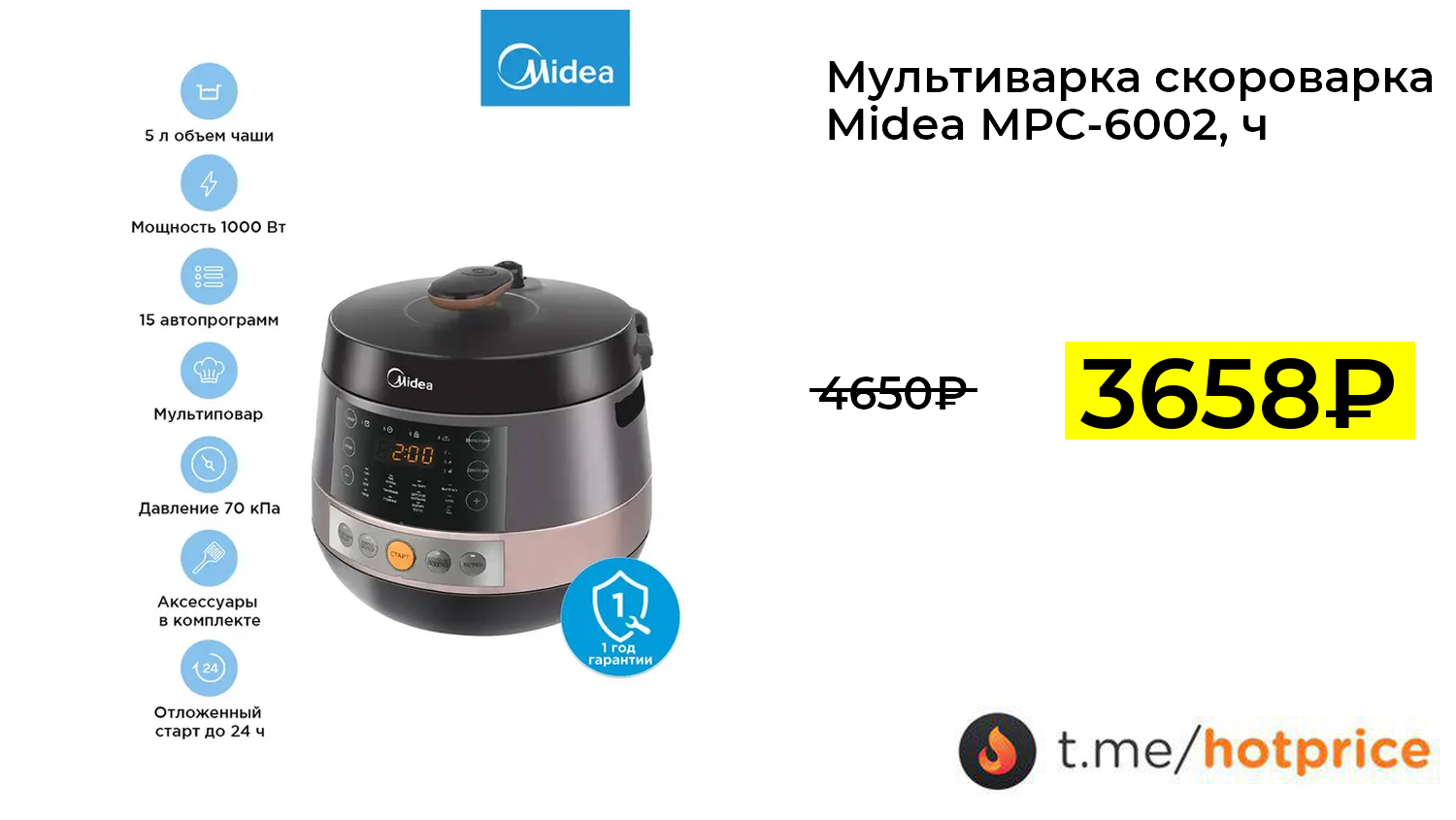 🔹 Мультиварка скороварка Midea MPC-6002, чаша 5 литров (с ВБ кошельком) за 3658₽ ❗️ (везде: 4650+₽)