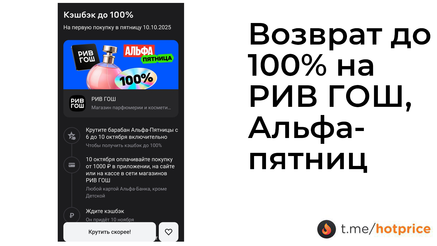 🔹 Возврат до 100% на РИВ ГОШ, Альфа-пятница ❗️