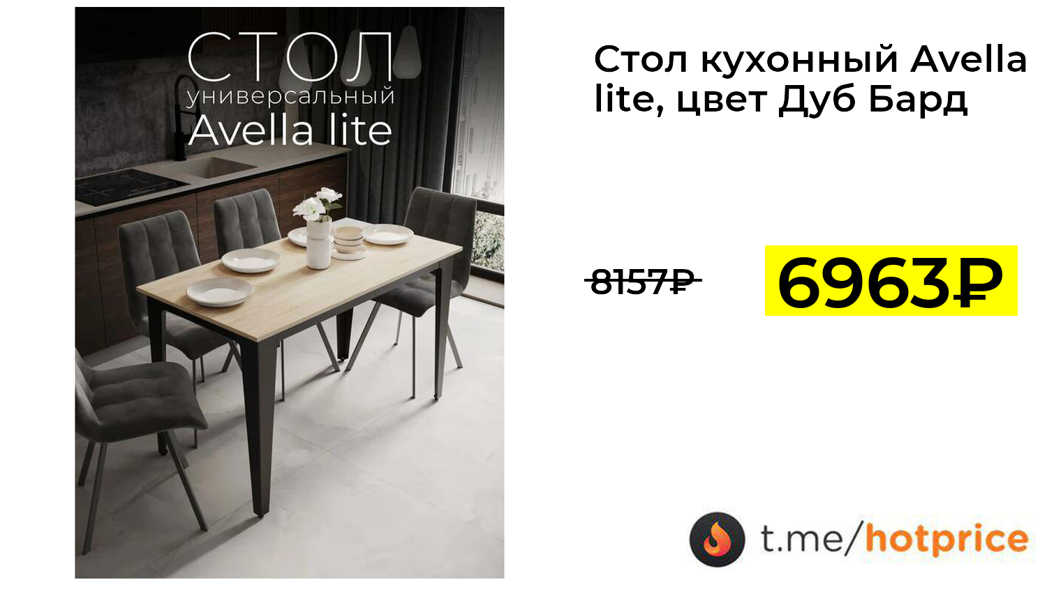 🔹 Стол кухонный Avella lite, цвет Дуб Бардолино (с Я.Пэй/Альфой, зависит от аккаунта) за 6963₽ ❗️ (везде: 8157+₽)