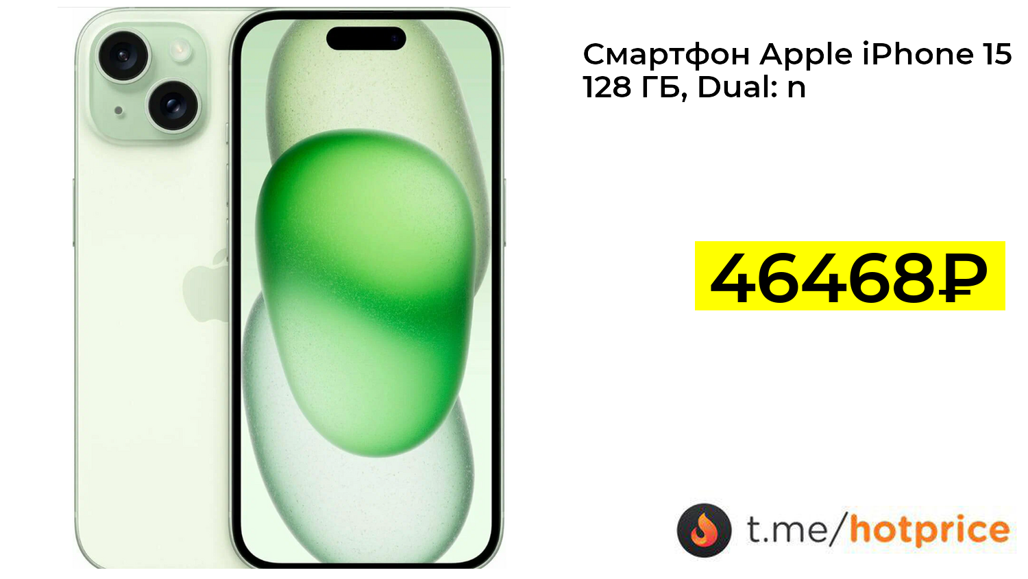 🔹 Смартфон Apple iPhone 15 128 ГБ, Dual: nano SIM + eSIM за 46468₽ ❗️