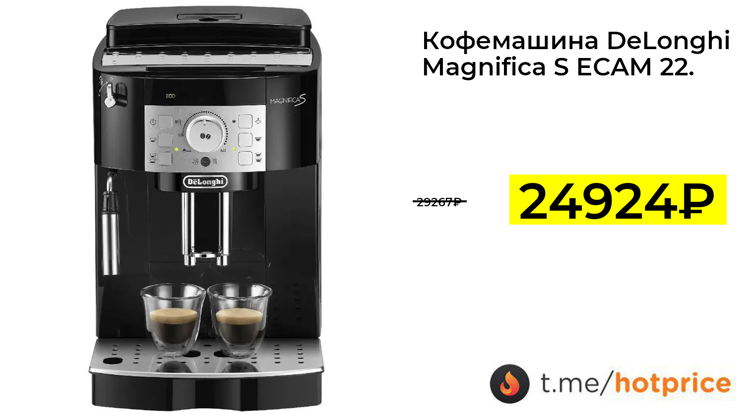 🔹 Кофемашина DeLonghi Magnifica S ECAM 22.114.B (с Я.Пэй/Альфой, зависит от аккаунта) за 24924₽ ❗️ (везде: 29267+₽)