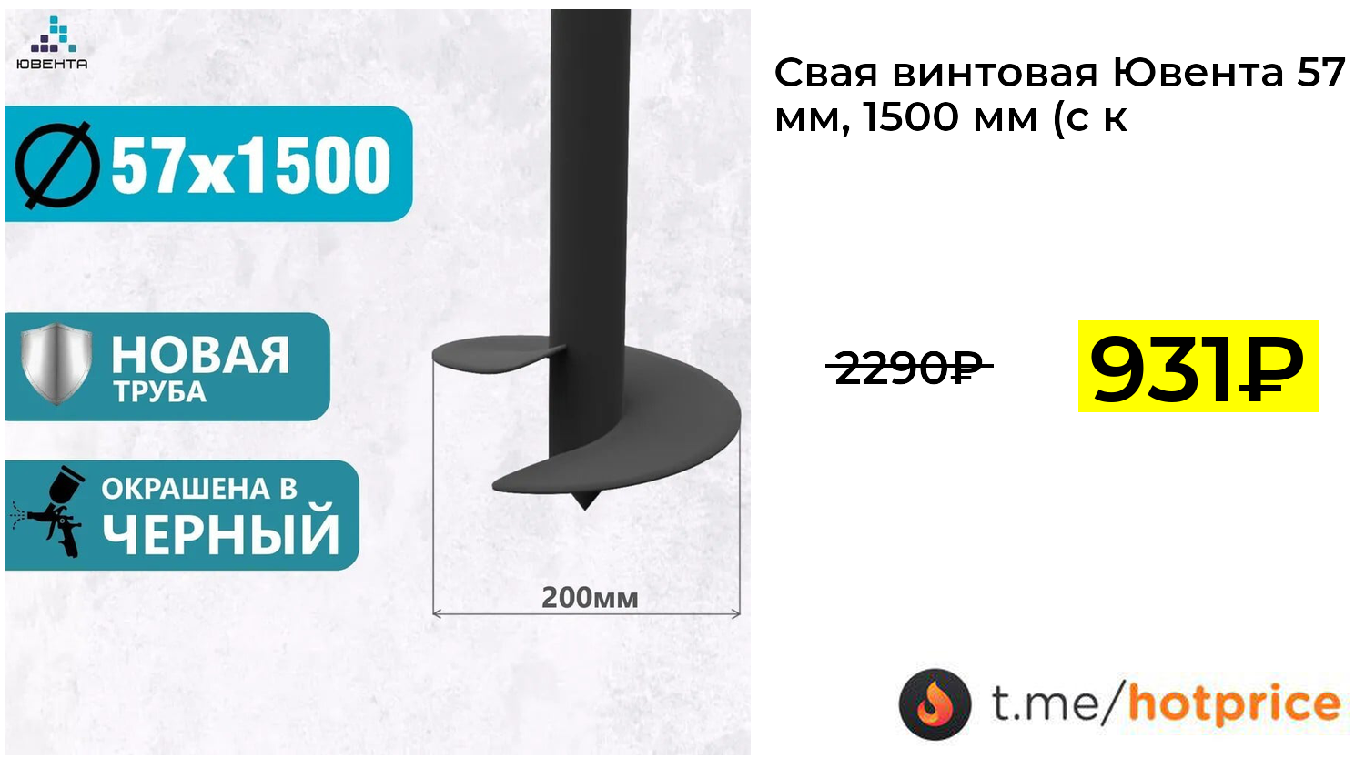 🔹 Свая винтовая Ювента 57 мм, 1500 мм (с картой OZON) за 931₽ ❗️ (везде: 2290+₽)