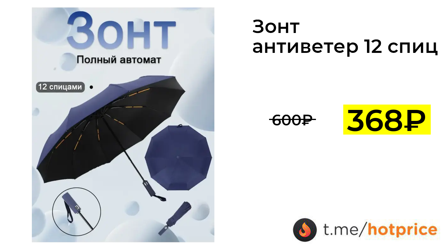 🔹 Зонт антиветер 12 спиц за 368₽ ❗️ (везде: 600+₽)