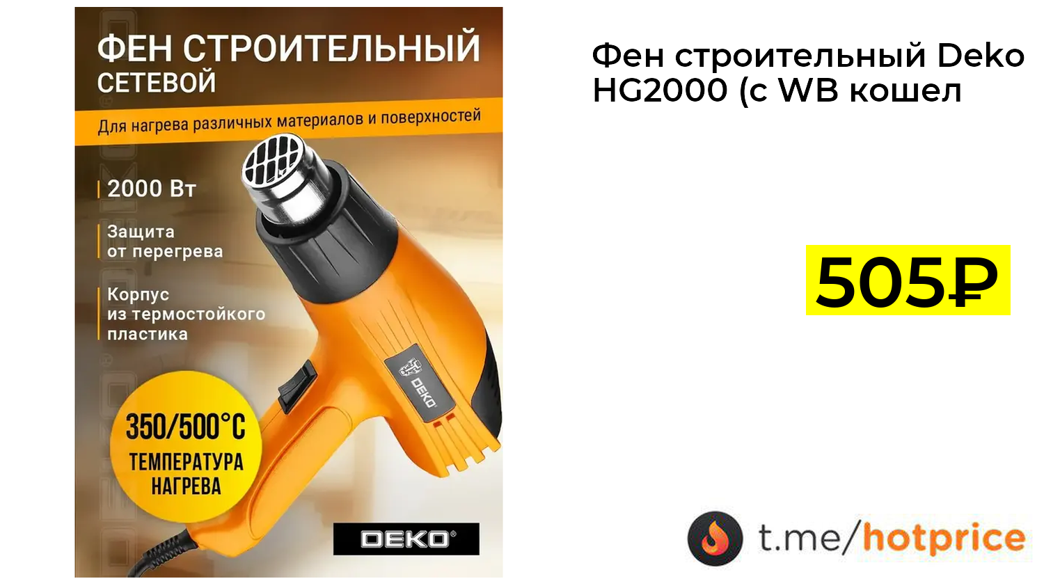 🔹 Фен строительный Deko HG2000 (с WB кошельком) за 505₽ ❗️
