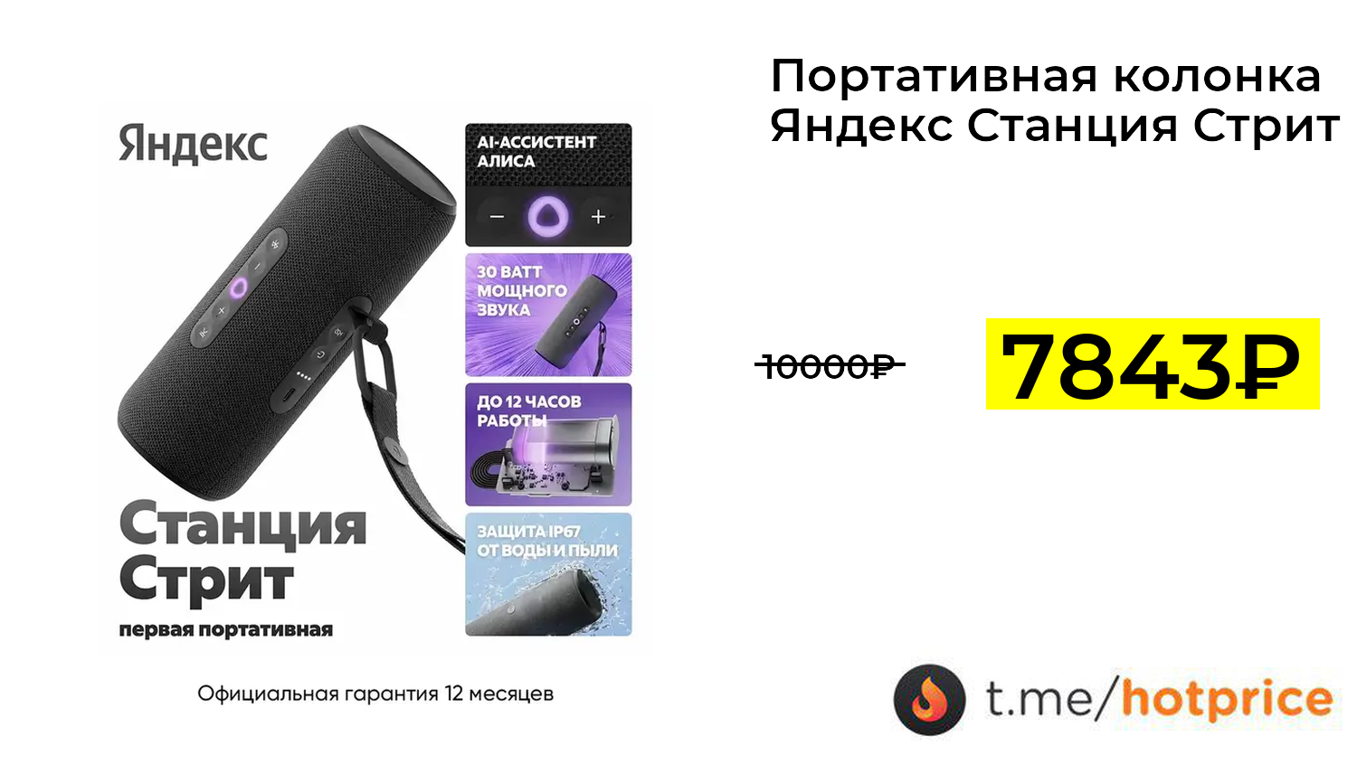 🔹 Портативная колонка Яндекс Станция Стрит с Алисой, 30 Вт (с ВБ кошельком) за 7843₽ ❗️ (везде: 10000+₽)
