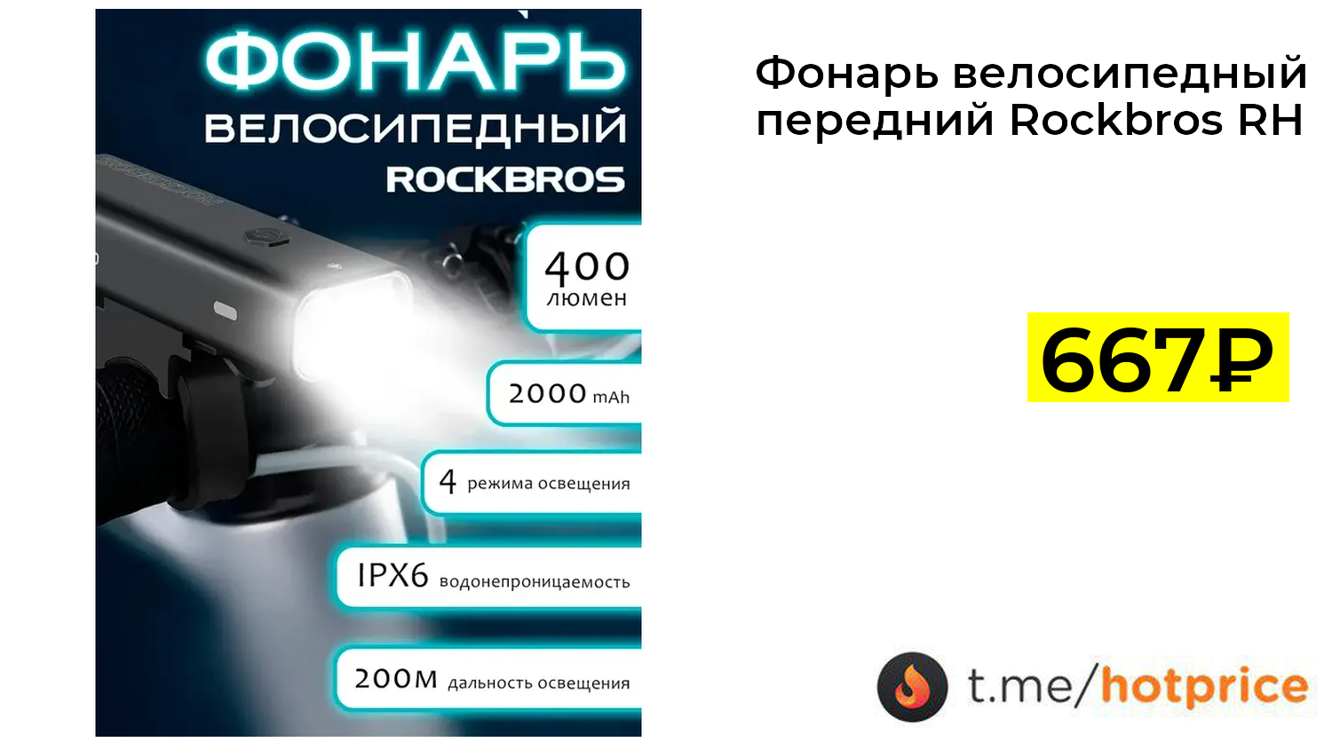 🔹 Фонарь велосипедный передний Rockbros RHL400, 400 люмен (с подпиской и вб кошельком) за 667₽ ❗️