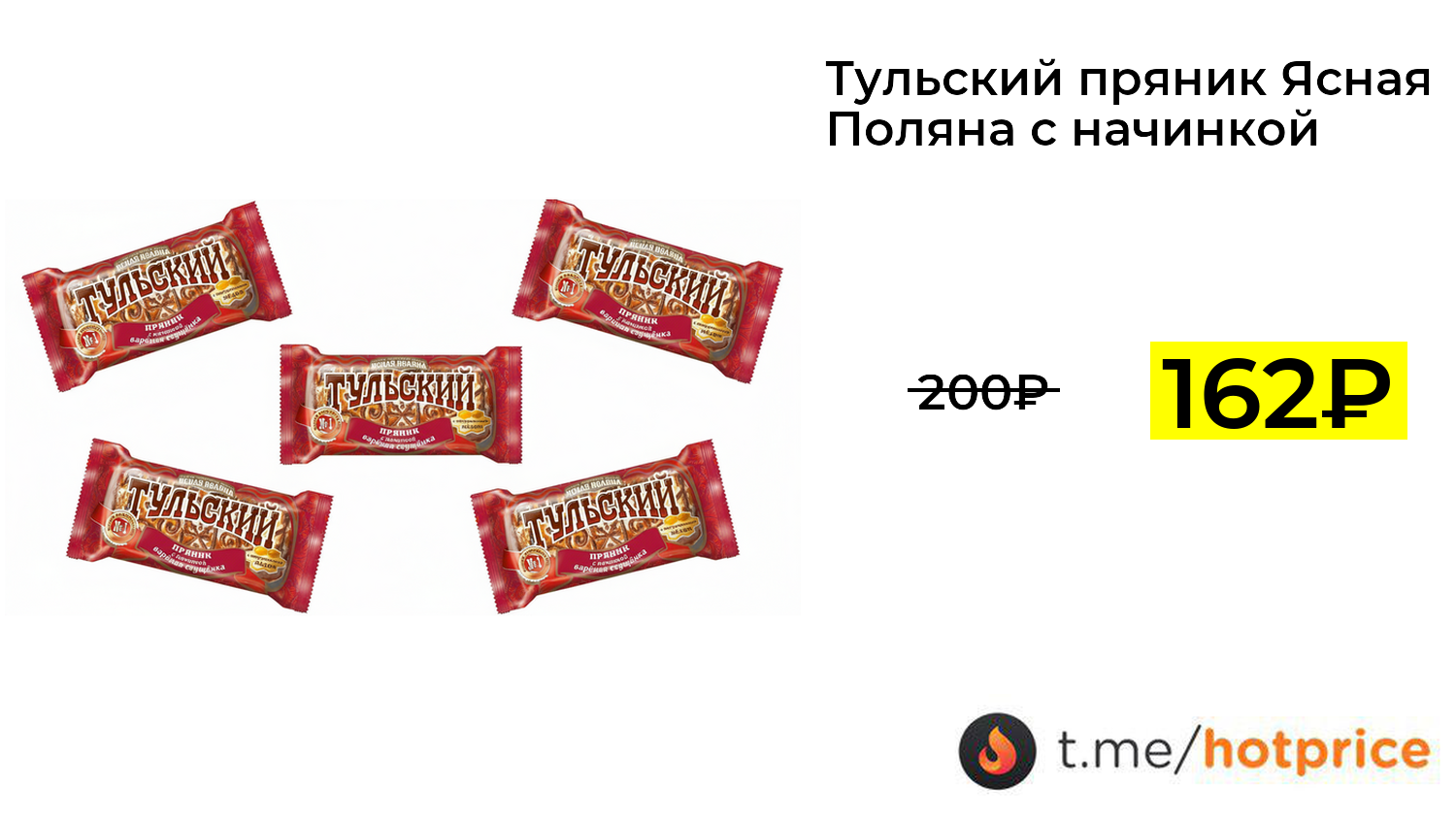 🔹 Тульский пряник Ясная Поляна с начинкой варёная сгущёнка 5 шт х 140 г (32.4₽ за 1 шт, с картой OZON и бонусами продавца) за 162₽ ❗️ (везде: 200+₽)