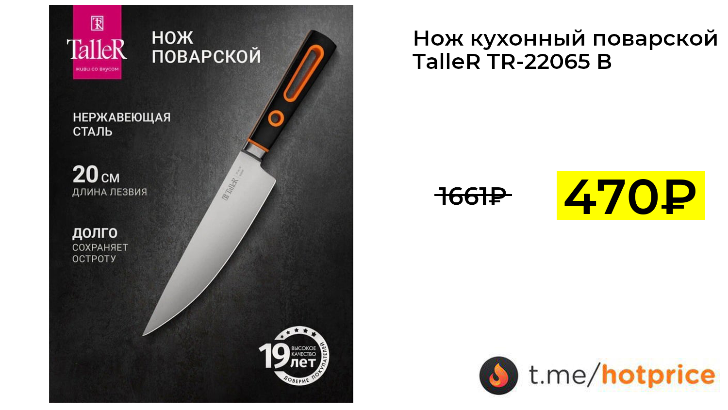 🔹 Нож кухонный поварской TalleR TR-22065 Ведж, лезвие 20 см за 470₽ ❗️ (везде: 1661+₽)