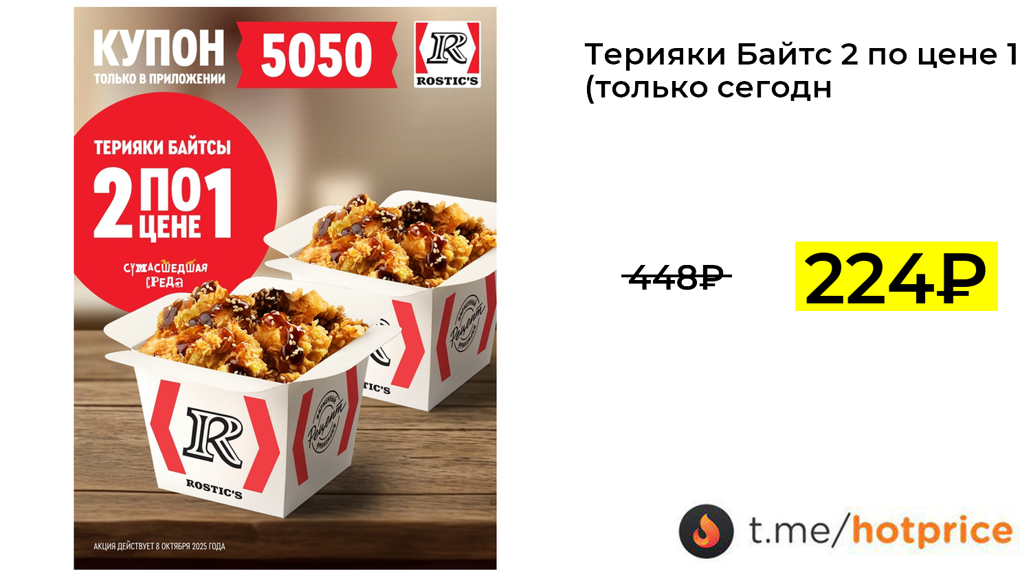 🔹 Терияки Байтс 2 по цене 1 (только сегодня) за 224₽ ❗️ (везде: 448+₽)