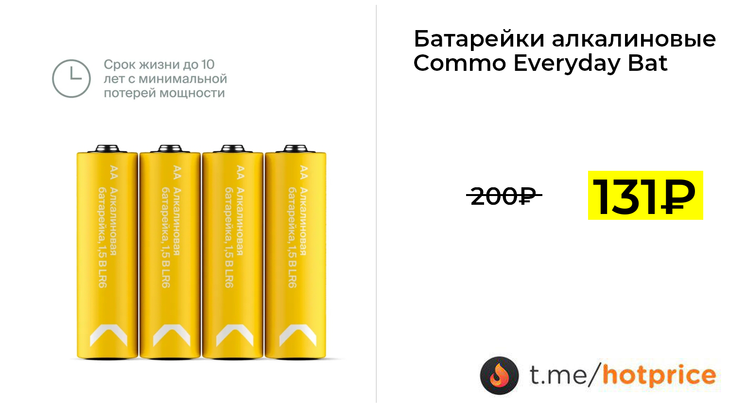 🔹 Батарейки алкалиновые Commo Everyday Batteries, LR6-АА, 4 шт (c WB кошельком) за 131₽ ❗️ (везде: 200+₽)