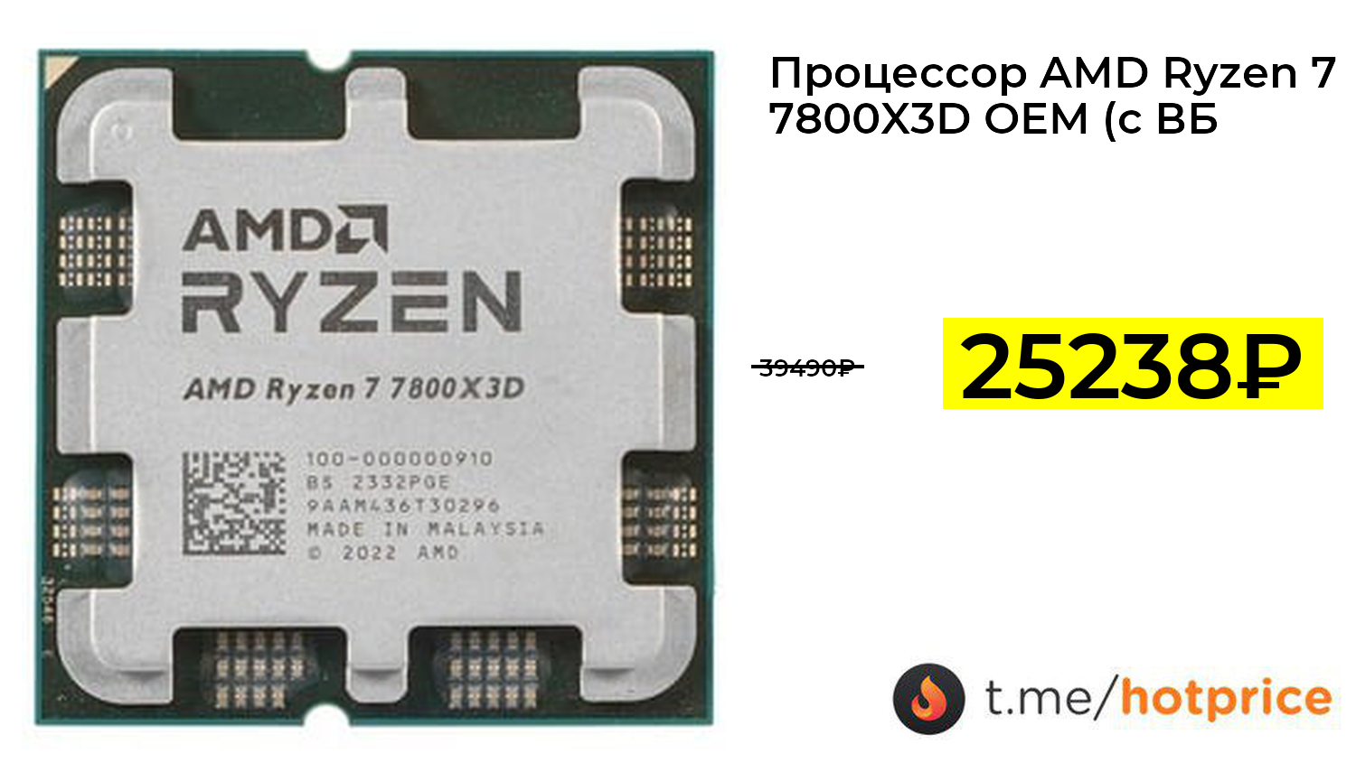 🔹 Процессор AMD Ryzen 7 7800X3D OEM (с ВБ кошельком) за 25238₽ ❗️ (везде: 39490+₽)