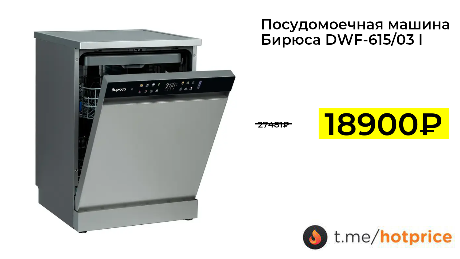 🔹 Посудомоечная машина Бирюса DWF-615/03 I, 15 комплектов (с ВБ кошельком) за 18900₽ ❗️ (везде: 27481+₽)