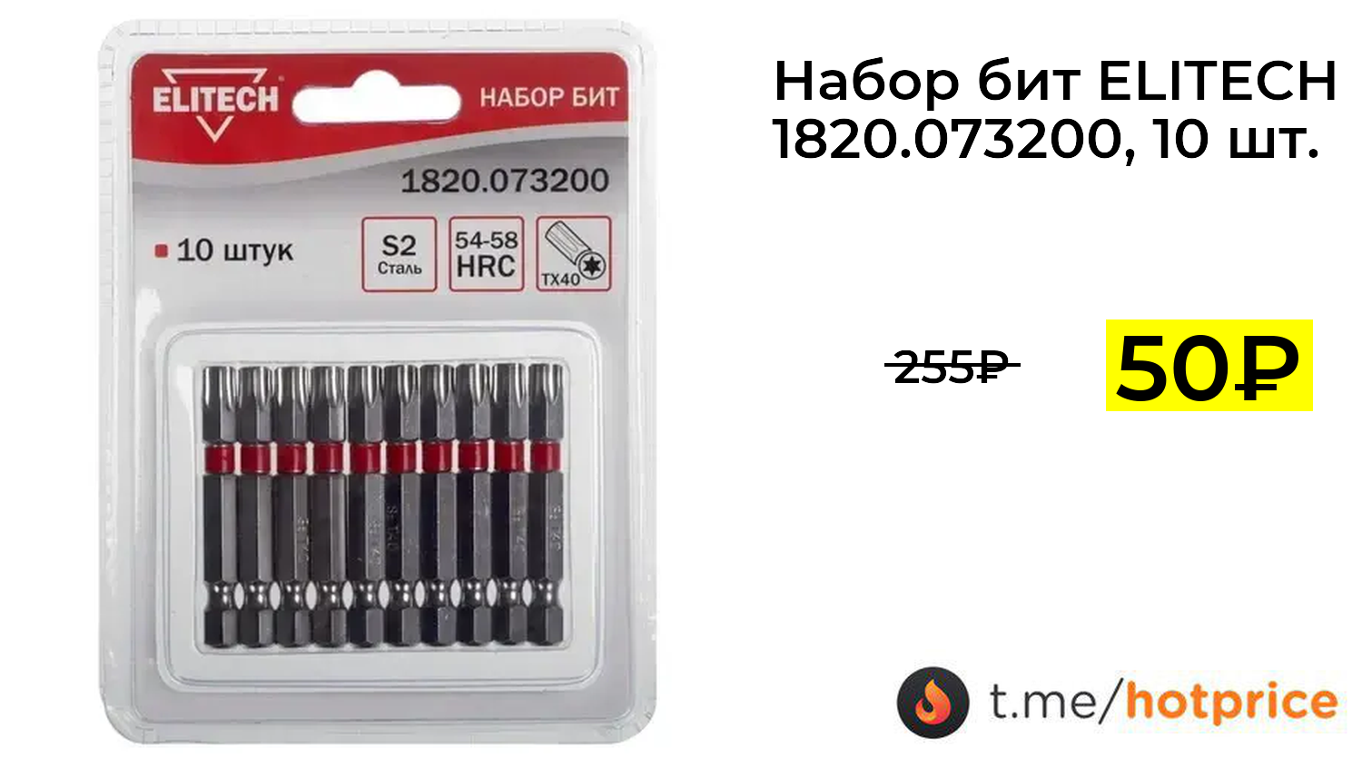 🔹 Набор бит ELITECH 1820.073200, 10 шт. за 50₽ ❗️ (везде: 255+₽)