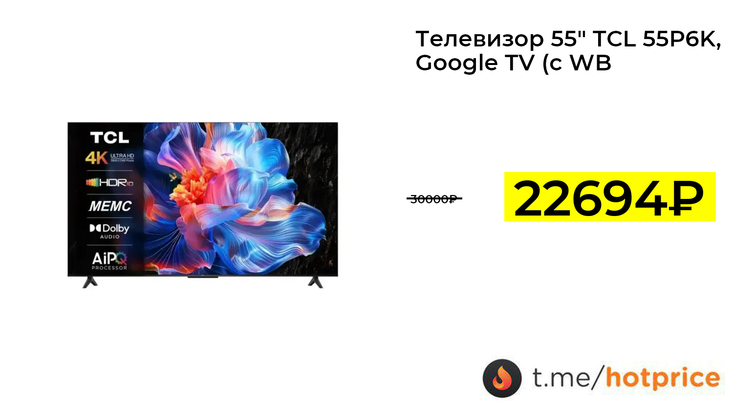 🔹 Телевизор 55" TCL 55P6K, Google TV (с WB кошельком) за 22694₽ ❗️ (везде: 30000+₽)